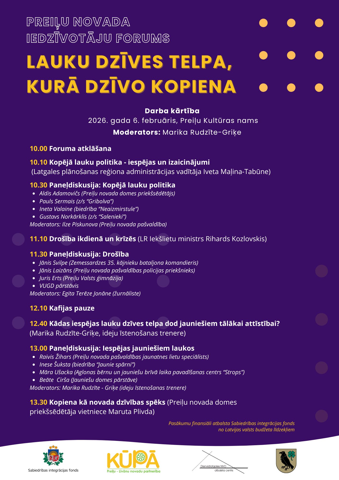 Biedrība "Preiļu - Līvānu novadu partnerība "Kūpā"" sadarbībā ar Preiļu novada pašvaldību un biedrību "Dienvidlatgales NVO atbalsta centrs" rīko Preiļu novada iedzīvotāju forumu - LAUKU DZĪVES TELPA, KURĀ DZĪVO KOPIENA.